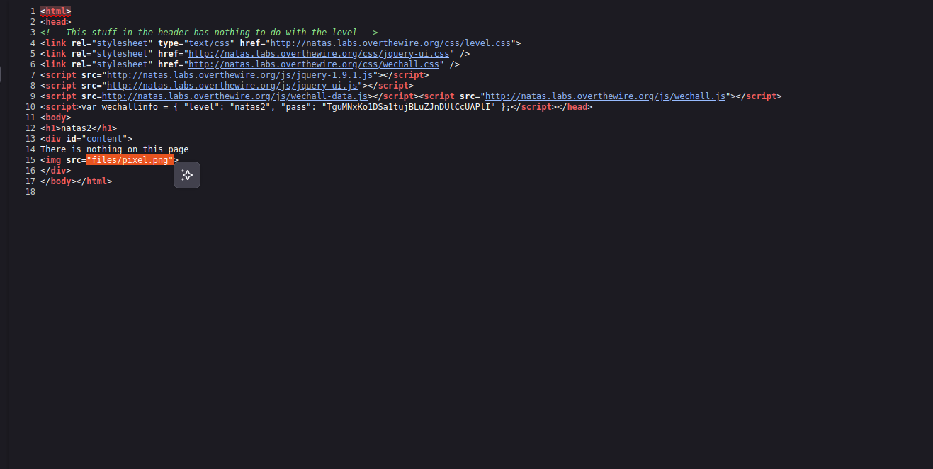 <script>var wechallinfo = { "level": "natas0", "pass": "natas0" };</script></head>