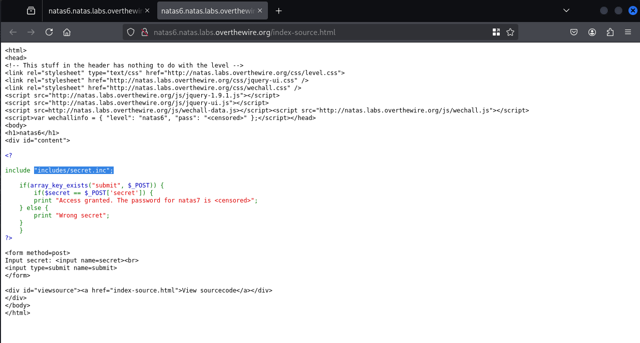 - All passwords are also stored in /etc/natas_webpass/.