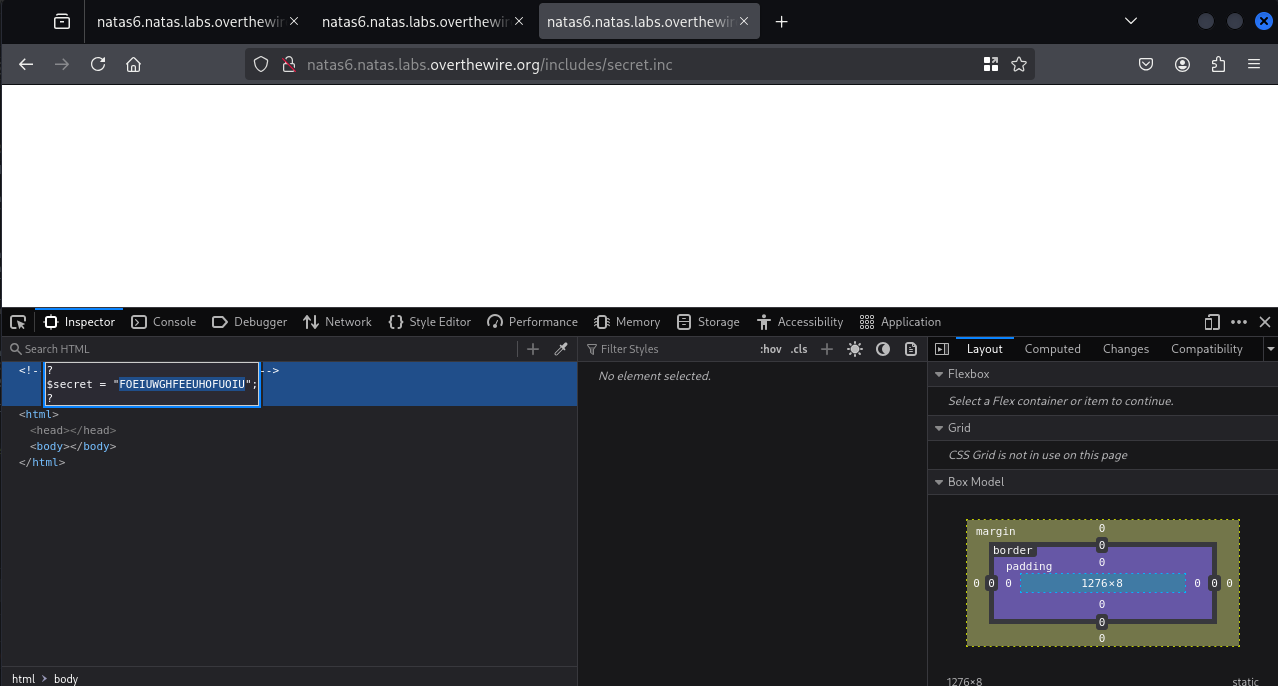<link rel="stylesheet" href="http://natas.labs.overthewire.org/css/wechall.css" />